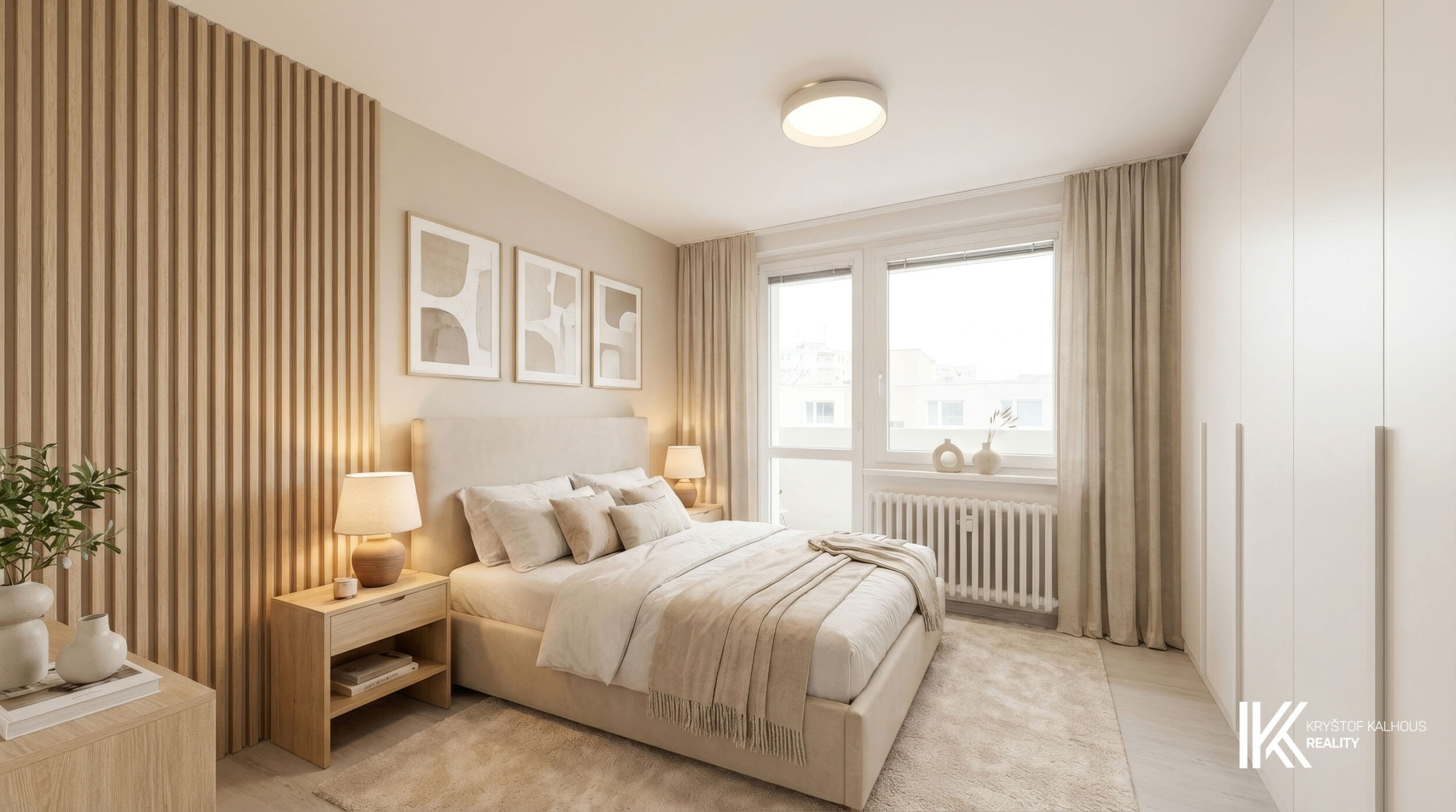 Další dva pokoje jsou samostatné a neprůchozí. Jeden z nich má navíc vlastní balkon – místo, kde si ráno vychutnáte kávu, večer sklenku vína nebo kde můžete pěstovat bylinky a květiny. Tento pokoj může sloužit jako ložnice s příjemným napojením na venkovní prostor, nebo jako dětský pokoj. Další pokoj se pak může stát druhým dětským pokojem, pracovnou nebo třeba pokojem pro hosty – podle aktuálních potřeb rodiny.