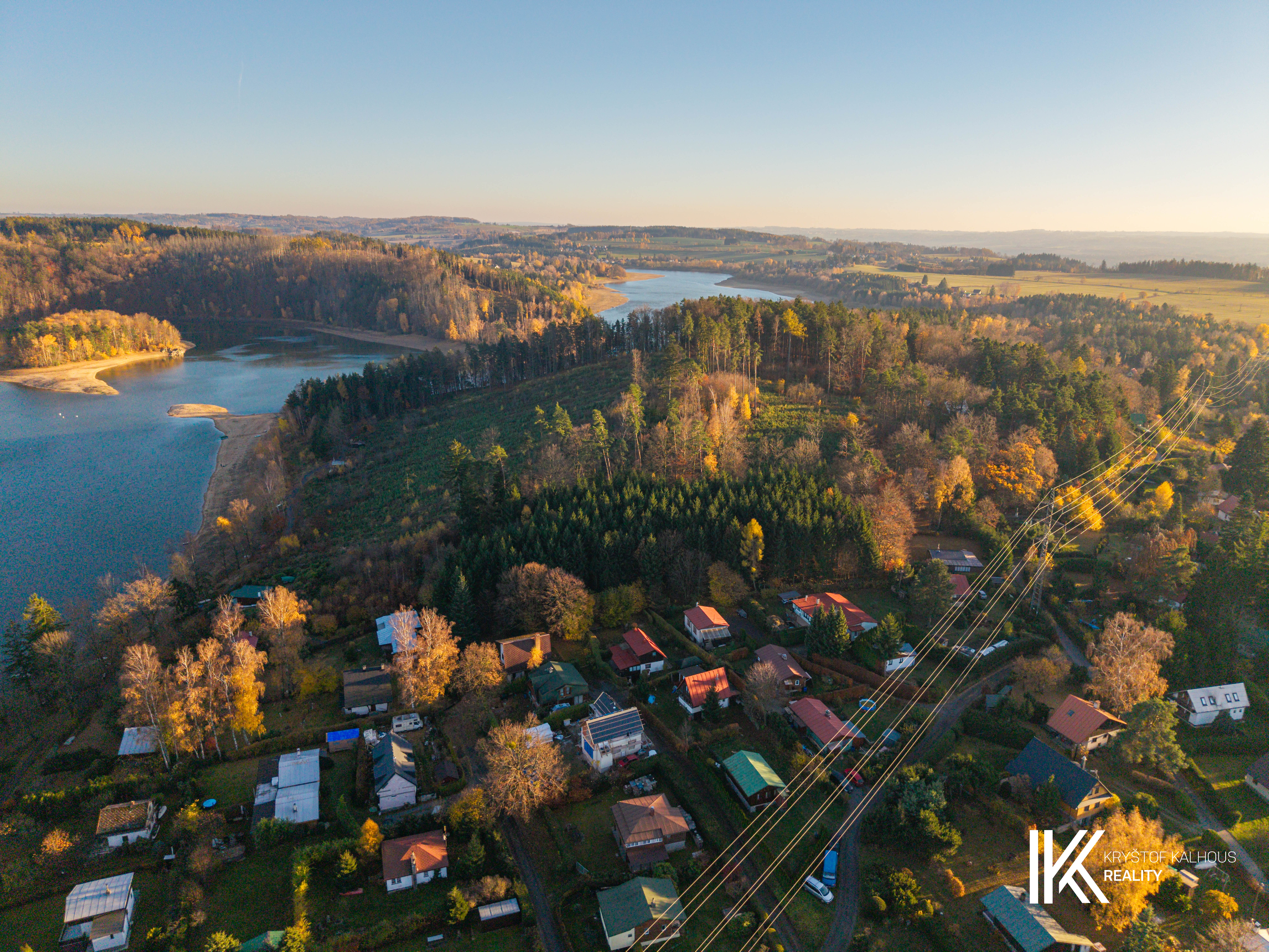 Chata stojí na samém okraji chatařské oblasti, takže díky své poloze jako poslední v řadě poskytuje dostatek soukromí. Přilehlá zahrada je orientovaná jihovýchodně a navazuje na malý háj, skrze který se dostanete během pár minut pěšky přímo k břehu přehrady.
