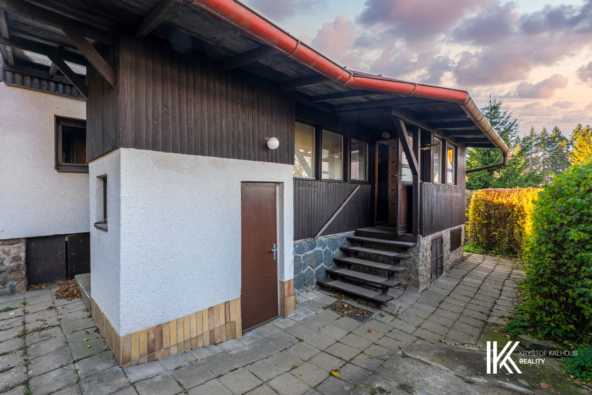 Pod chatou je navíc prostorný sklep, ideální pro uskladnění sportovních potřeb, dřeva nebo zásob.