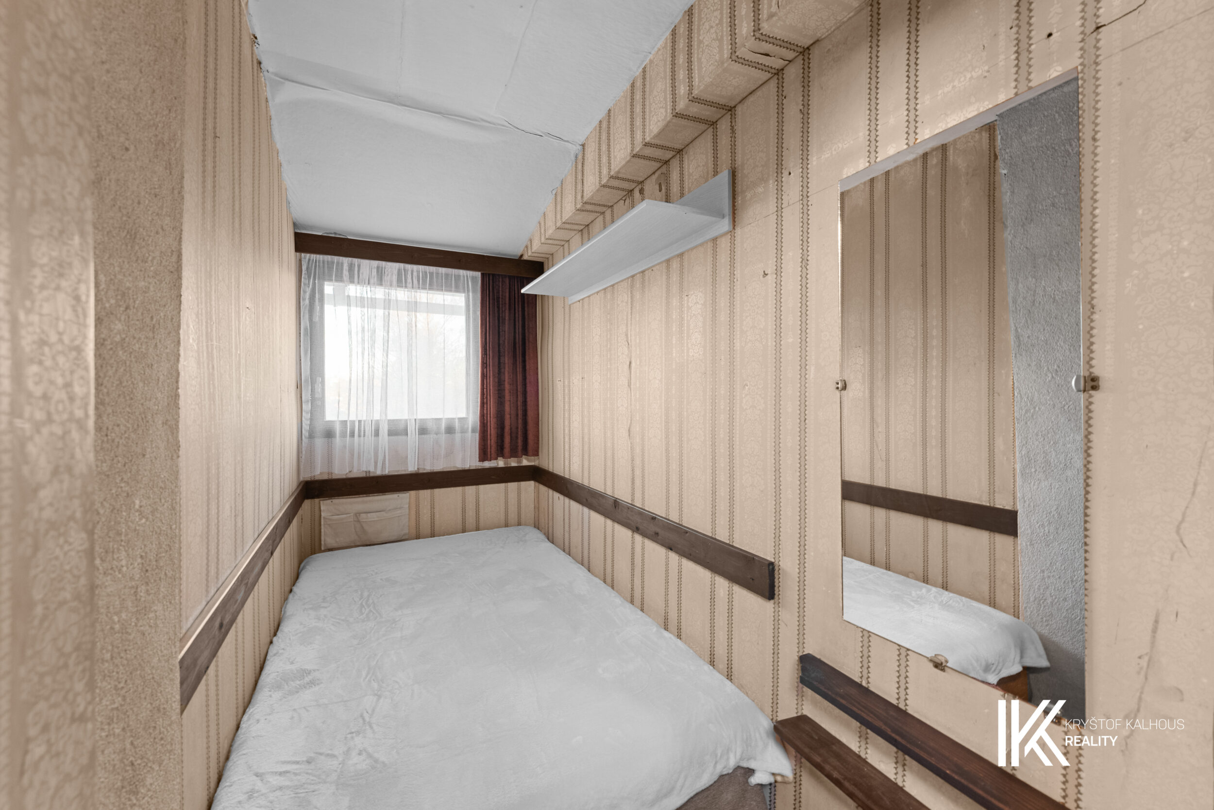 Druhá jednotka, větší a ve svém původním duchu, má užitnou plochu přibližně 53 m² a nese v sobě pravou atmosféru klasické chaty. Za malou předsíní vás přivítá průchozí pokoj. Díky umístění hned vedle kuchyně může skvěle posloužit jako jídelna, anebo pouhé zádveří či prostor pro uložení věcí po dni stráveném venku.