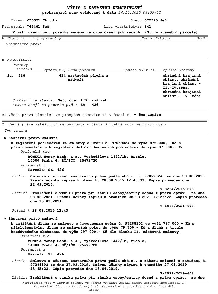 | Průměrné provozní náklady na celý objekt | elektřina 3 700 Kč měsíčně voda 900 Kč měsíčně odvoz komunálního odpadu 900 Kč / rok vývoz jímky 2 500 Kč, četnost dle potřeby |