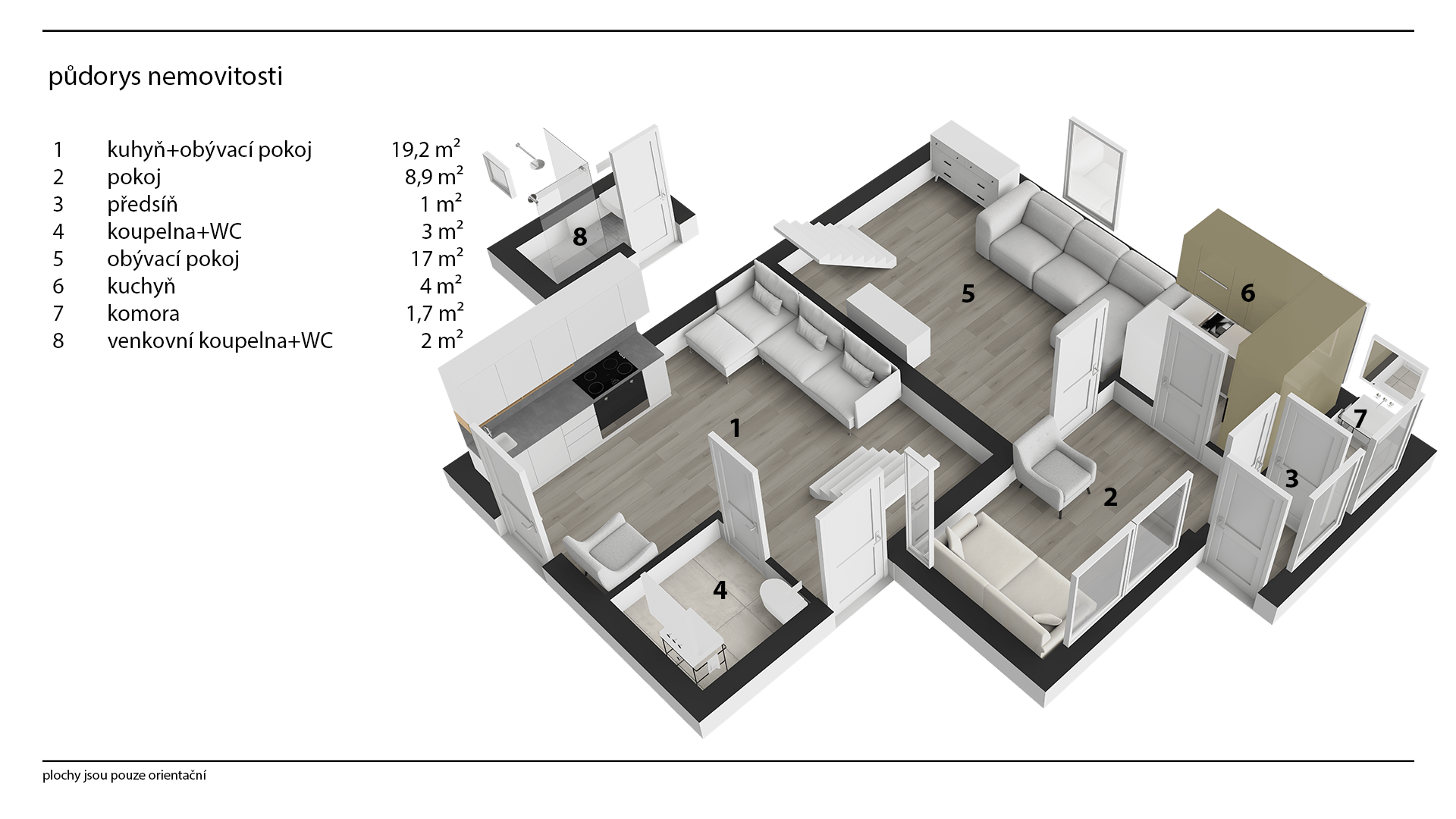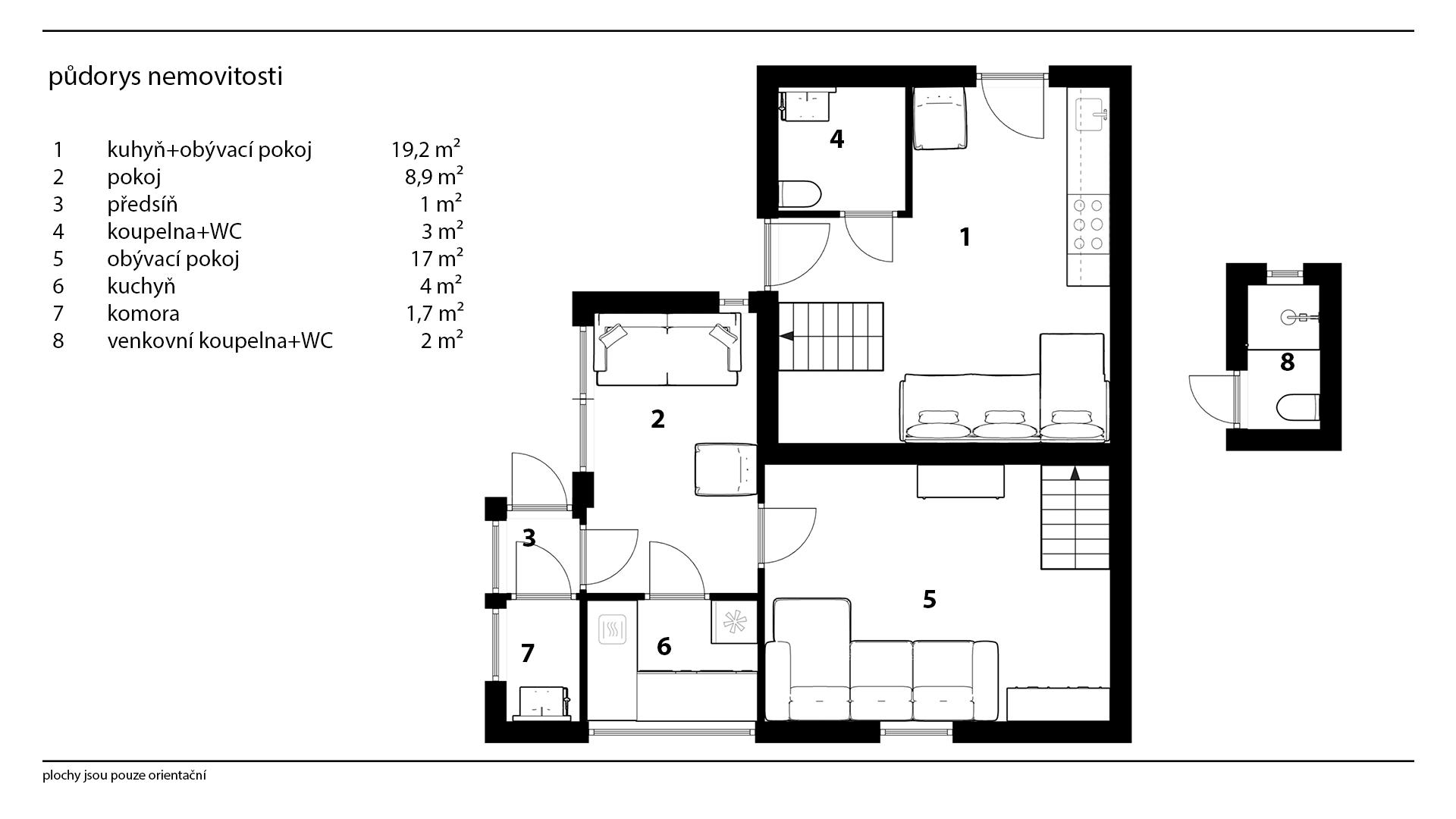 | Vnitřní uspořádání | dvě samostatné obytné jednotky s vlastním vstupem |