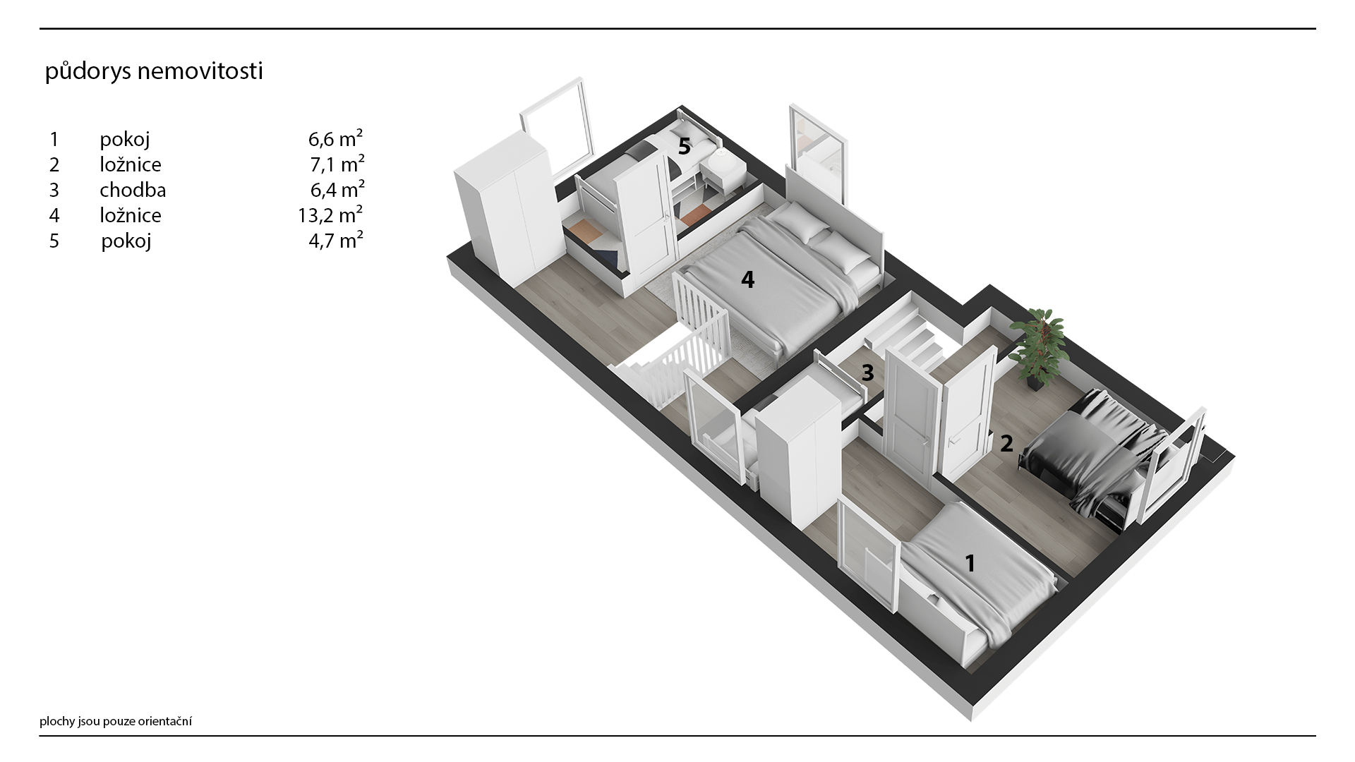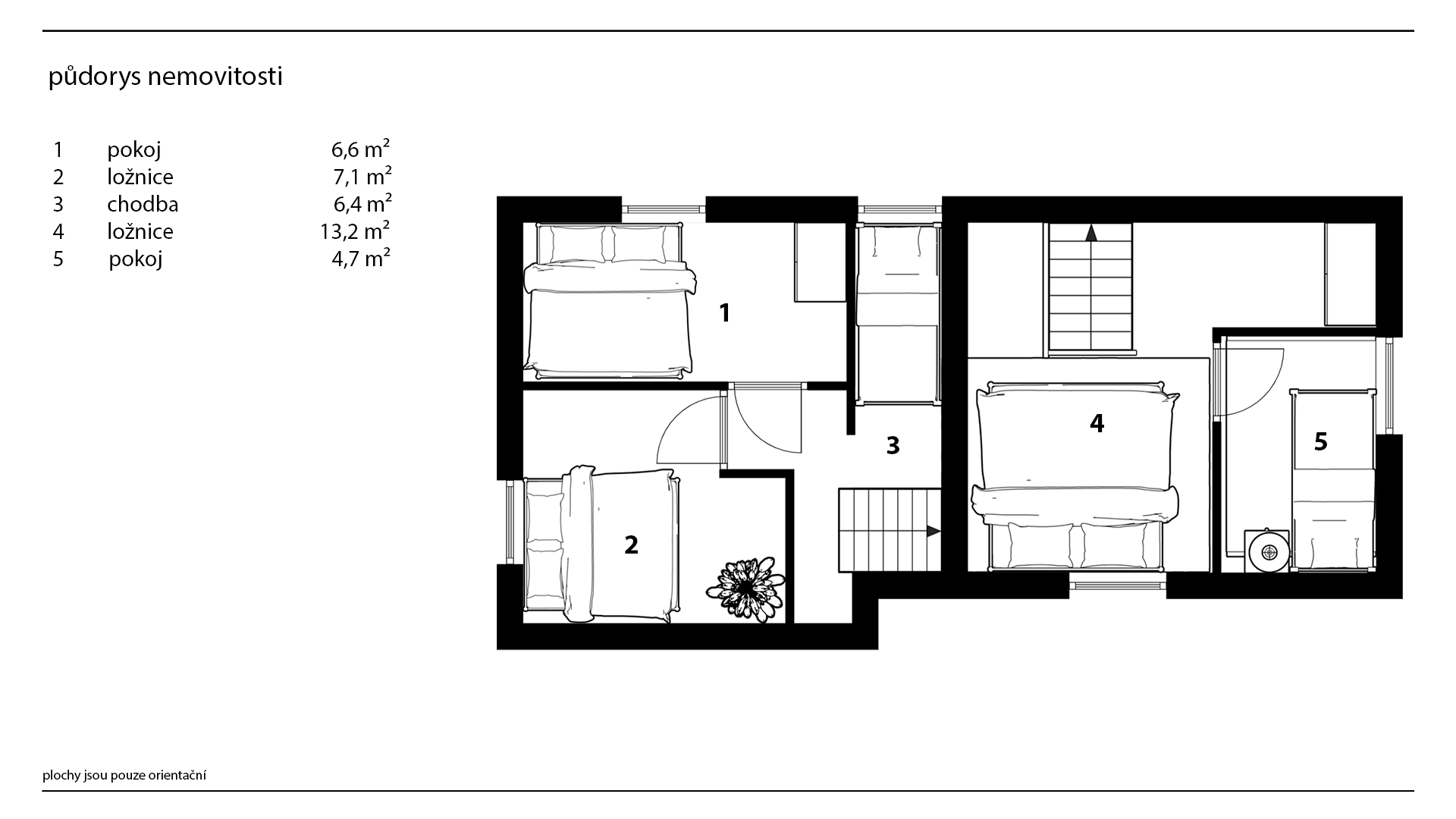 | Dispozice a užitná plocha | menší jednotka 3+kk – 40 m2 větší jednotka 5+kk – 53 m2 |