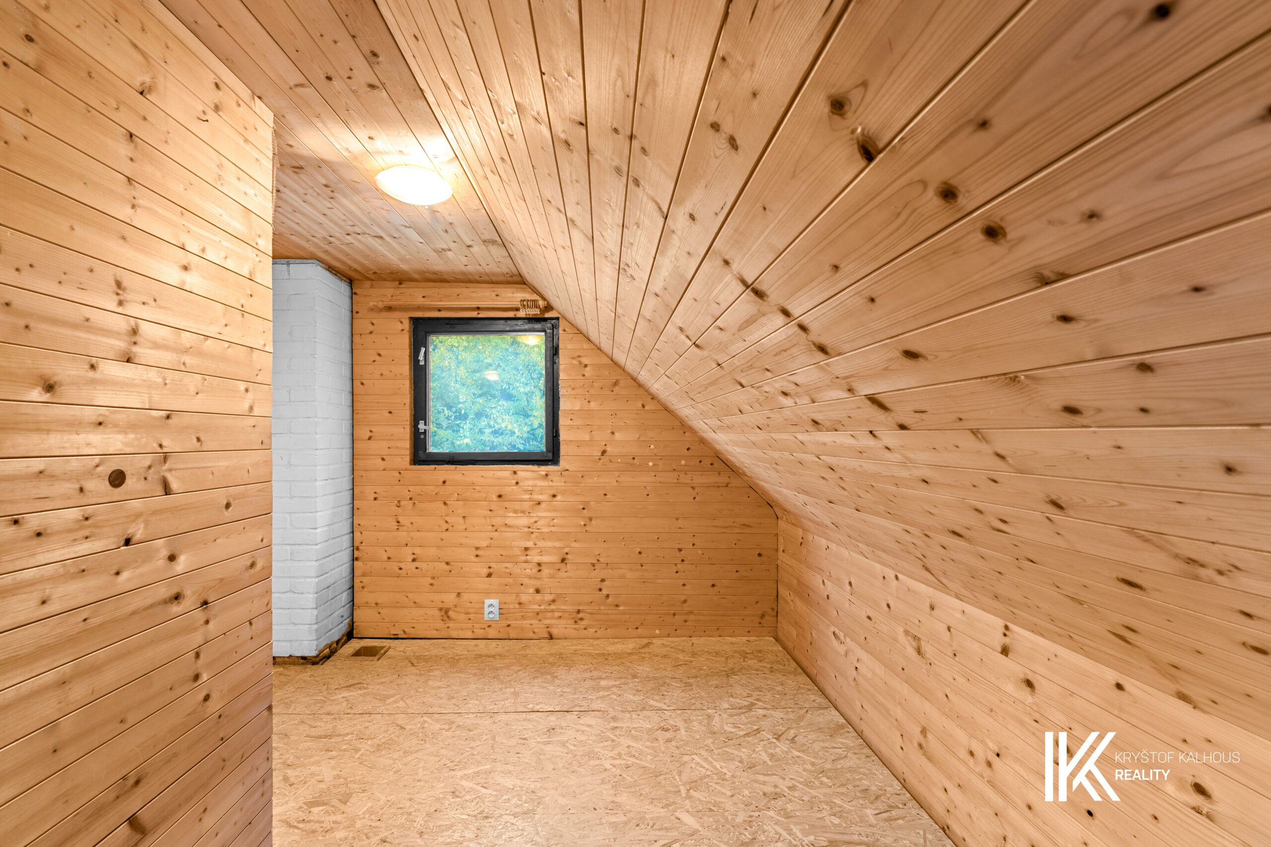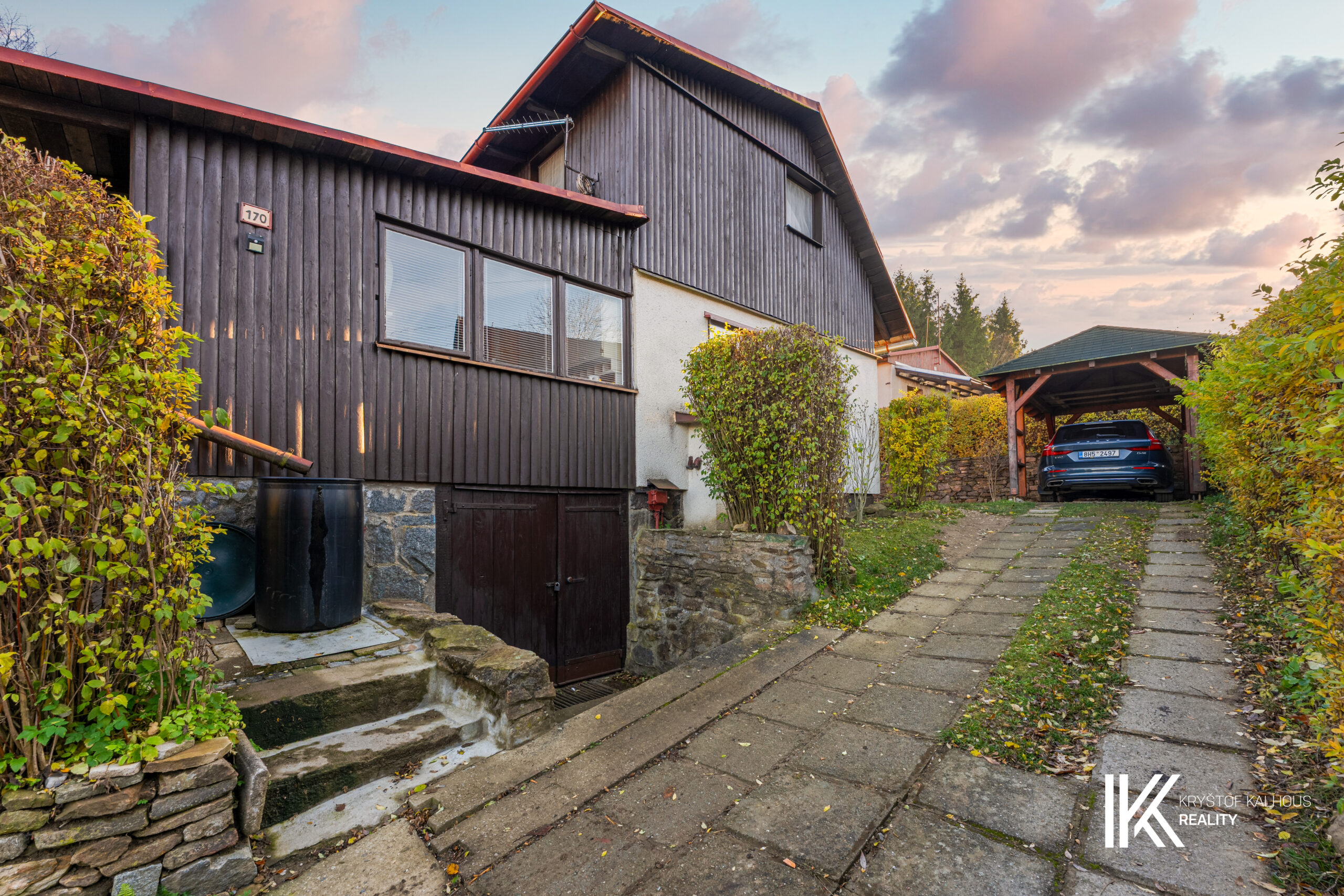 Pod chatou je navíc prostorný sklep, ideální pro uskladnění sportovních potřeb, dřeva nebo zásob.