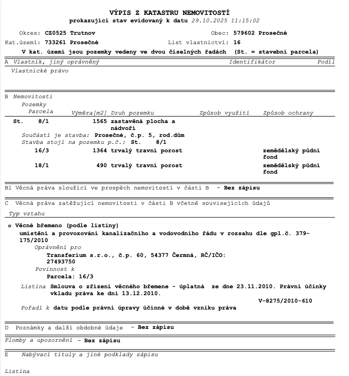 Zahrada volně navazuje na sousední nezastavěné pozemky, které jsou dle územního plánu určené k zástavbě. V případě zájmu lze zprostředkovat i jejich prodej a vytvořit tak jeden celek o celkové výměře až 3 419 m² – ideální pro rozšíření usedlosti nebo rozvoj dalšího projektu.