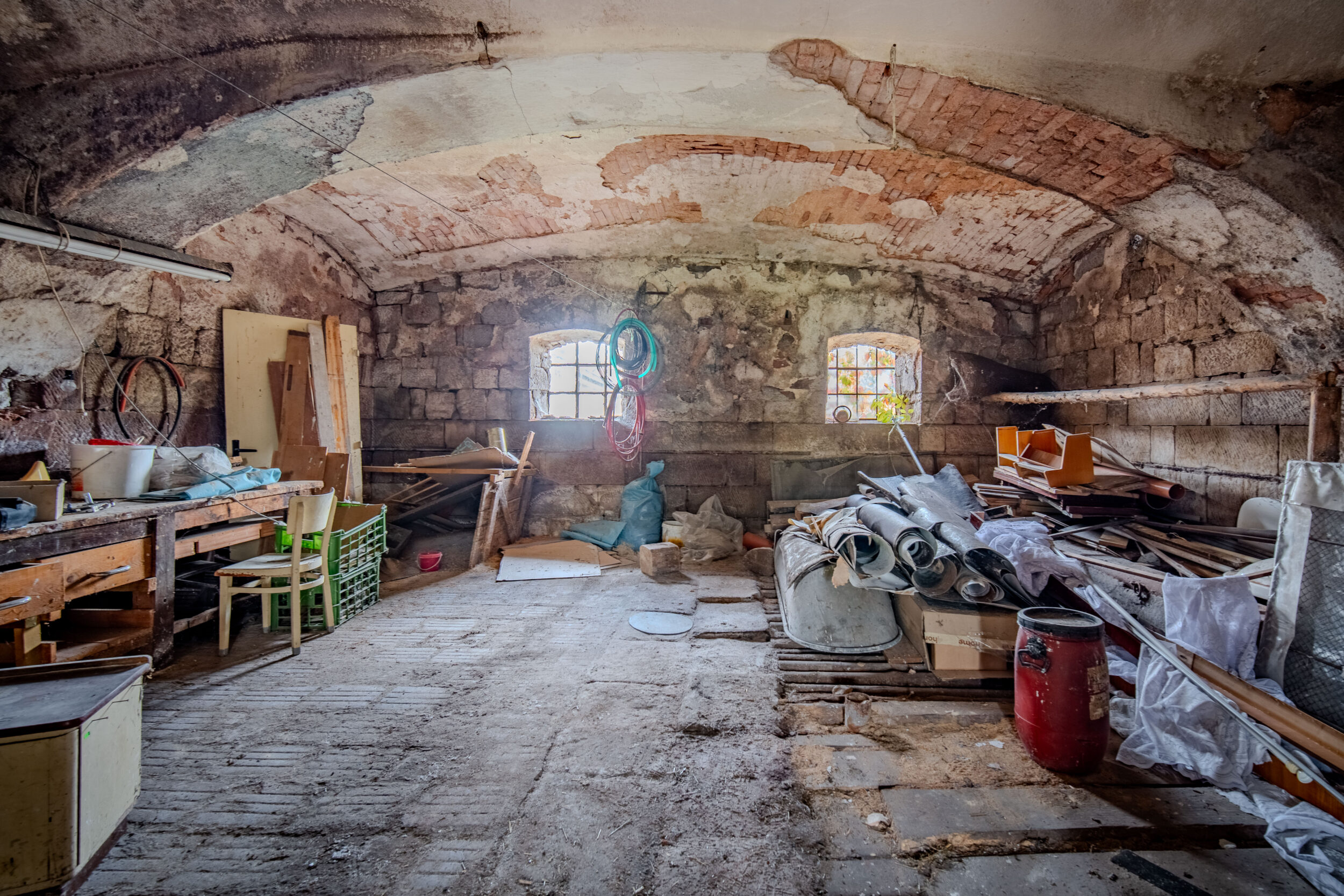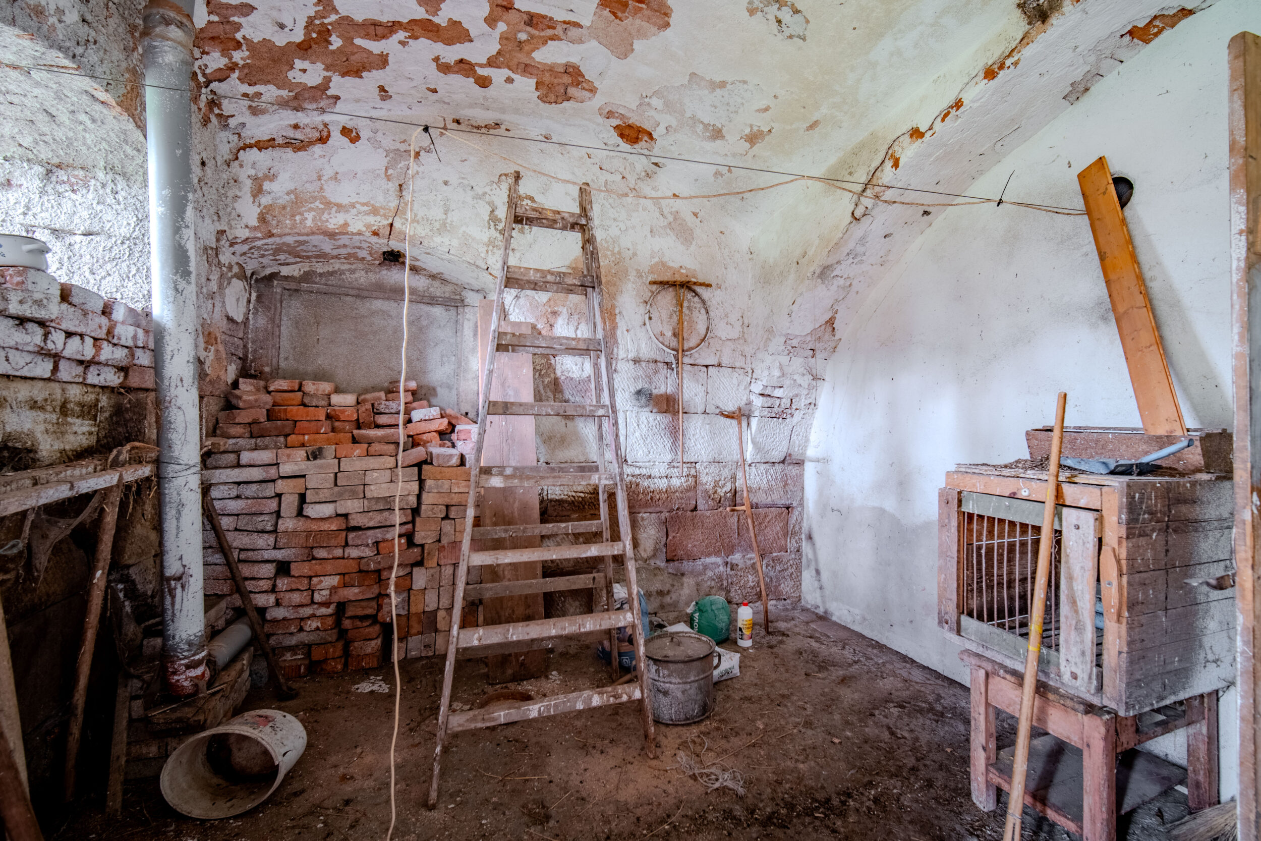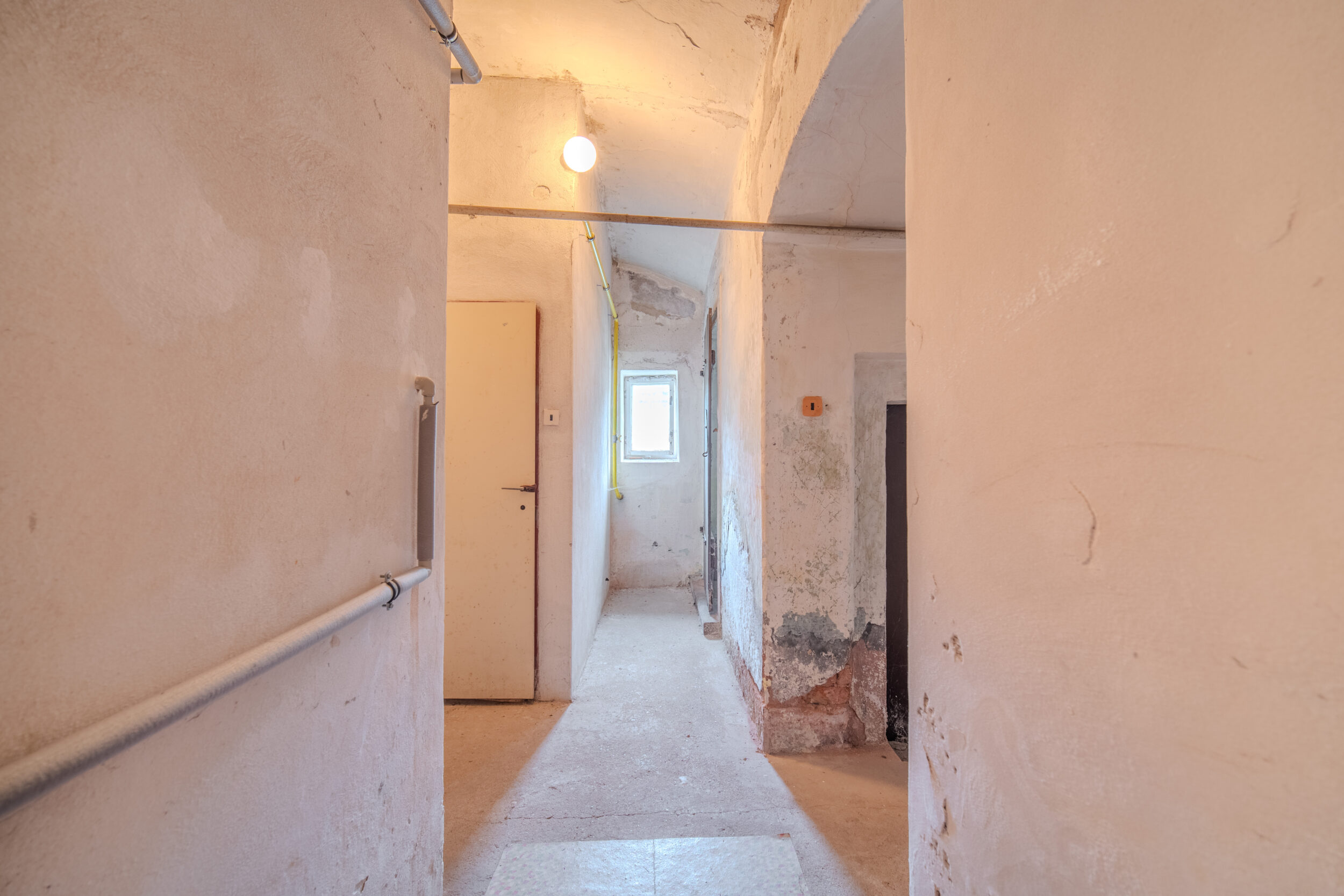 Na vstupní chodbu dále navazuje chodba do zadní části přízemí, nabízející technické zázemí a vstupy na půdu i do sklepa. Tato část nabízí obrovský potenciál – z půdy lze vybudovat obytné podkroví s výhledem do krajiny, zatímco sklep může posloužit jako vinárna, sklad potravin či wellness zóna s kamennými klenbami a původními stěnami, které si zachovaly přirozený chlad.