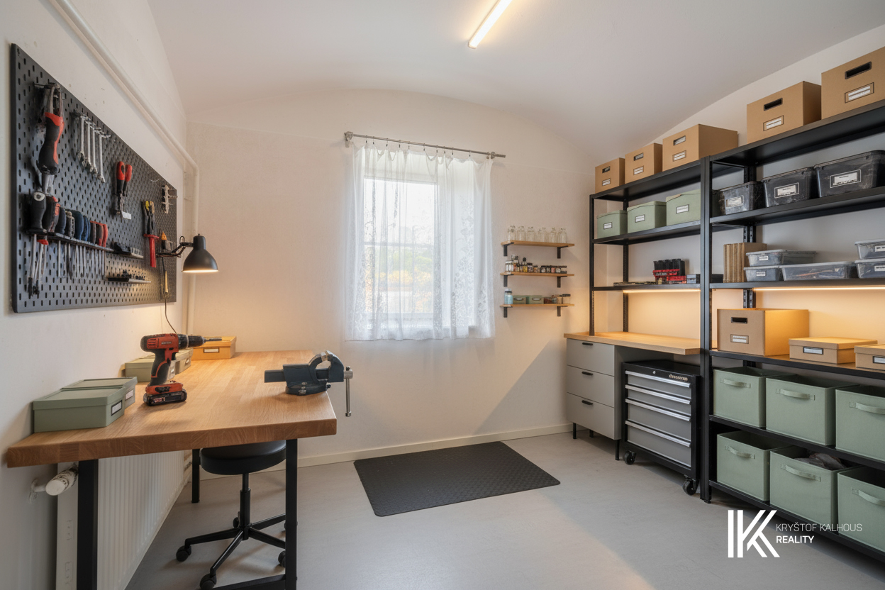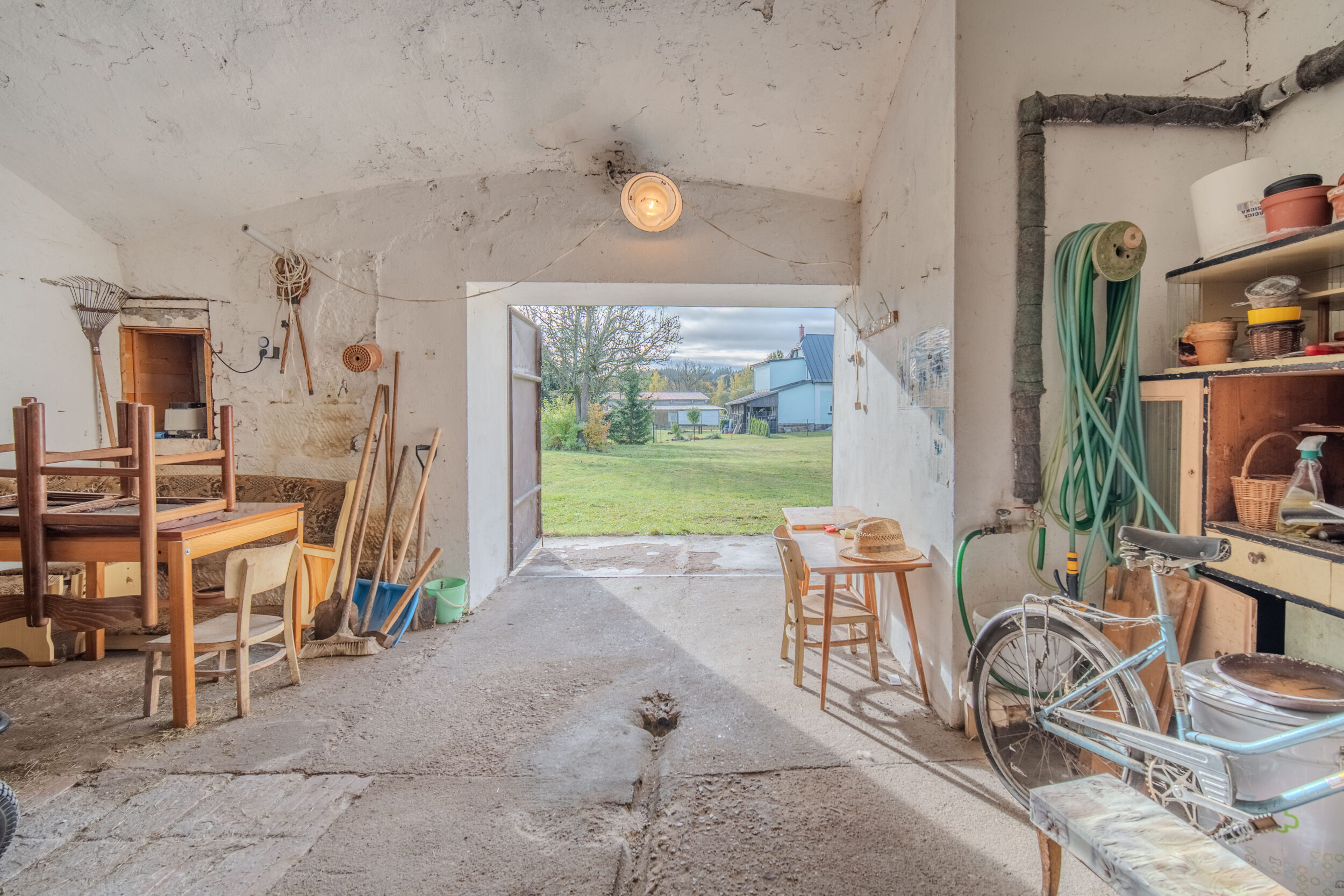 Nemovitost tvoří jeden harmonický celek rozdělený do tří částí – obytnou část, prostornou garáž s dílnou a hospodářské zázemí, které kdysi sloužilo pro chov zvířat. Každá z těchto částí má samostatný vstup, což otevírá široké možnosti budoucího využití – od rodinného sídla po ubytování či ateliérový prostor.